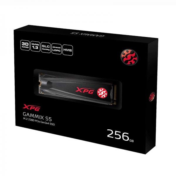 Boot, load, and transfer faster with the XPG GAMMIX S5 PCIe Gen3x4 M.2 2280 solid state drive (SSD). With support for NVMe 1.3 and equipped with 3D NAND Flash, it offers up to 4 times faster performance than SATA SSDs and up to 1TB of capacity. Whats more, the GAMMIX S5 sports excellent heat dissipation capability with a built-in heatsink that can cool things down by up to 10 ?„C. A Cool Heatsink Performance Meets Durability Speed Wins Battles Improved Data Integrity Backed by a 5-Year Warranty A Cool Heatsink A slender, black heatsink with a hairline-brushed finish makes the GAMMIX S5 look and stay cool. Compared to M.2 SSDs without a heatsink, the GAMMIX S5 is up to 10 ?„C cooler, offering enhanced system stability. Performance Meets Durability Up to 4 times faster than SATA : Read/write speeds of up to 2100/1500MB/s NVMe 1.3 support 3D NAND Flash : Higher capacity, durability, and power efficiency M.2 2280 Form Factor : Supports the latest Intel and AMD platforms and offers easy cable-free installation Speed Wins Battles Featuring HMB (Host Memory Buffer) and SLC Caching, the GAMMIX S5 accelerates read/write speeds up to 2100/1500MB/s and delivers random performance of up to 250K/240K IOPS. Whether booting, gaming or transferring large files, the GAMMIX S5 accomplish them quickly and effectively. Improved Data Integrity The GAMMIX S5 utilizes LDPC (Low-Density Parity-Check) error correcting code technology to detect and fix a wider range of data errors for more reliable data transfers and a longer product lifespan. Backed by a 5-Year Warranty Every component within the GAMMIX S5 has passed rigorous screening and testing to ensure the utmost quality and reliability. Moreover, if that isnt enough assurance for you, the GAMMIX S5 comes backed by a 5-year warranty. Specification : Capacity 256GB Form Factor M.2 2280 NAND Flash 3D TLC Controller Realtek Dimensions ( L x W x H ) 22 x 80 x 3.7mm Weight 11.2g Interface PCIe Gen3x4 Performance(Max) Read 2100MB/s , Write 1500MB/s Maximum 4K random read / write IOPS : up to 250K/240K * Performance may vary based on SSD capacity, host hardware and software, operating system, and other system variables. Operating temperature 0 ?„C 70 ?„C Storage temperature 40 ?„C 85 ?„C Shock resistance 1500G/0.5ms MTBF 2,000,000 hours Warranty 5 years