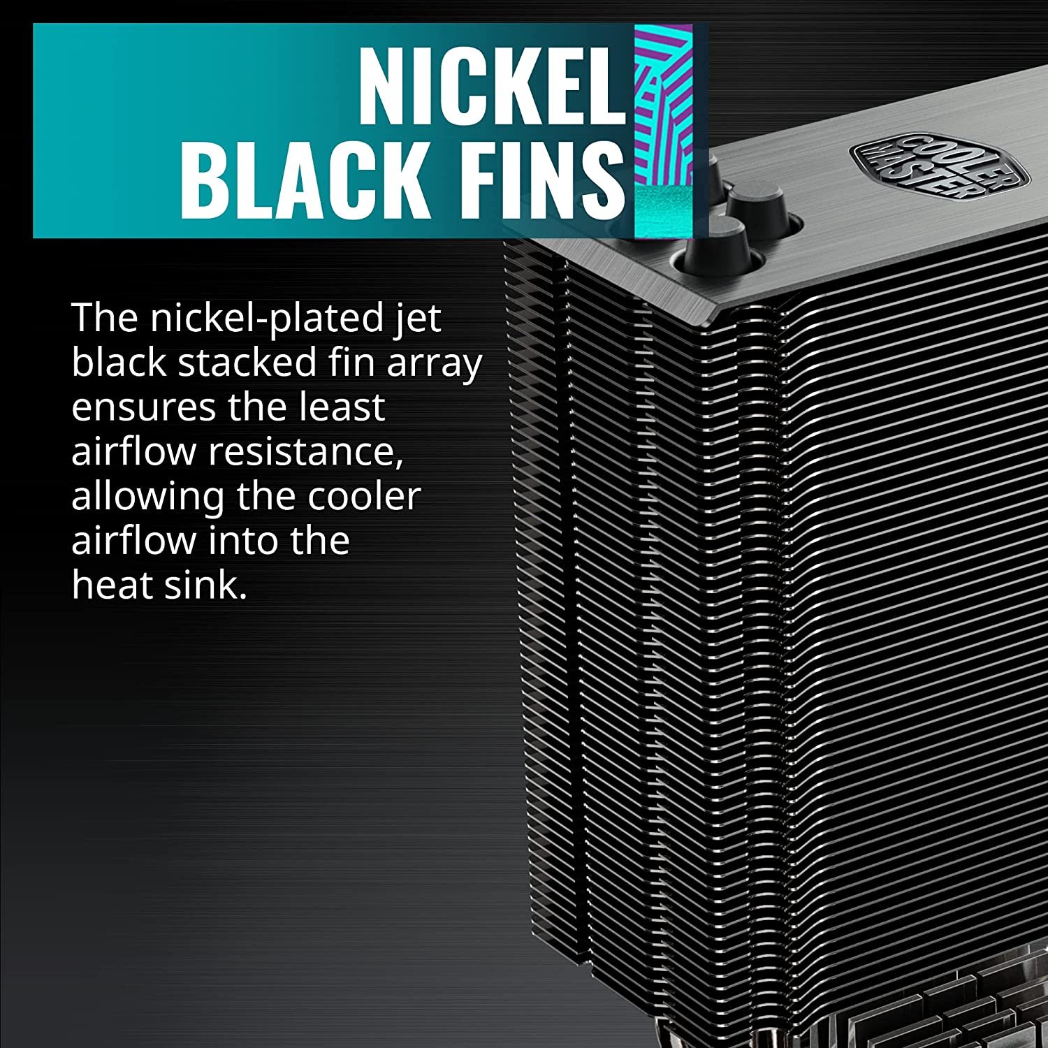 The legendary Hyper air cooler is back and better than before. The Hyper 212 RGB Black Edition offers better installation and great performance, easily one of the best air cooling solutions. The aluminum top cover and nickel plated jet black fins, give the Hyper 212 RGB Black Edition a premium aesthetic appeal. The sleek jet black not only makes it look great, but also increase cooling performance.