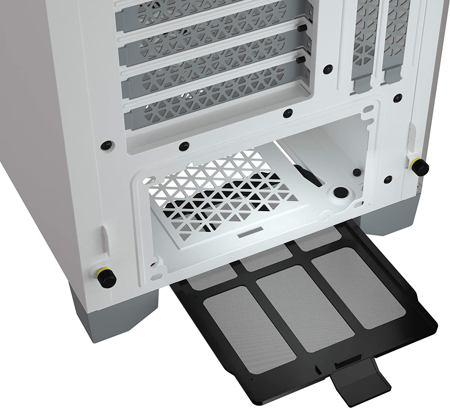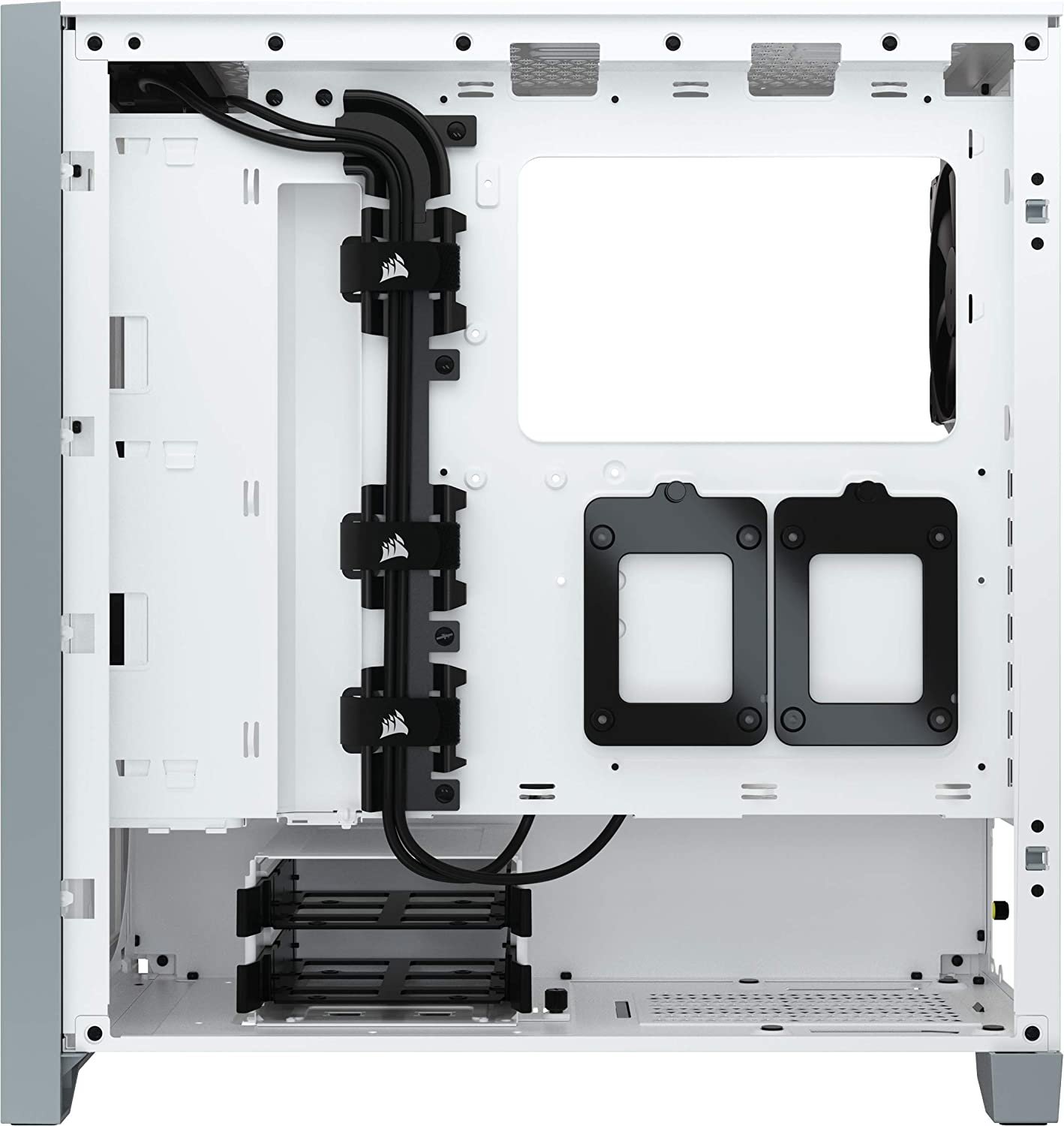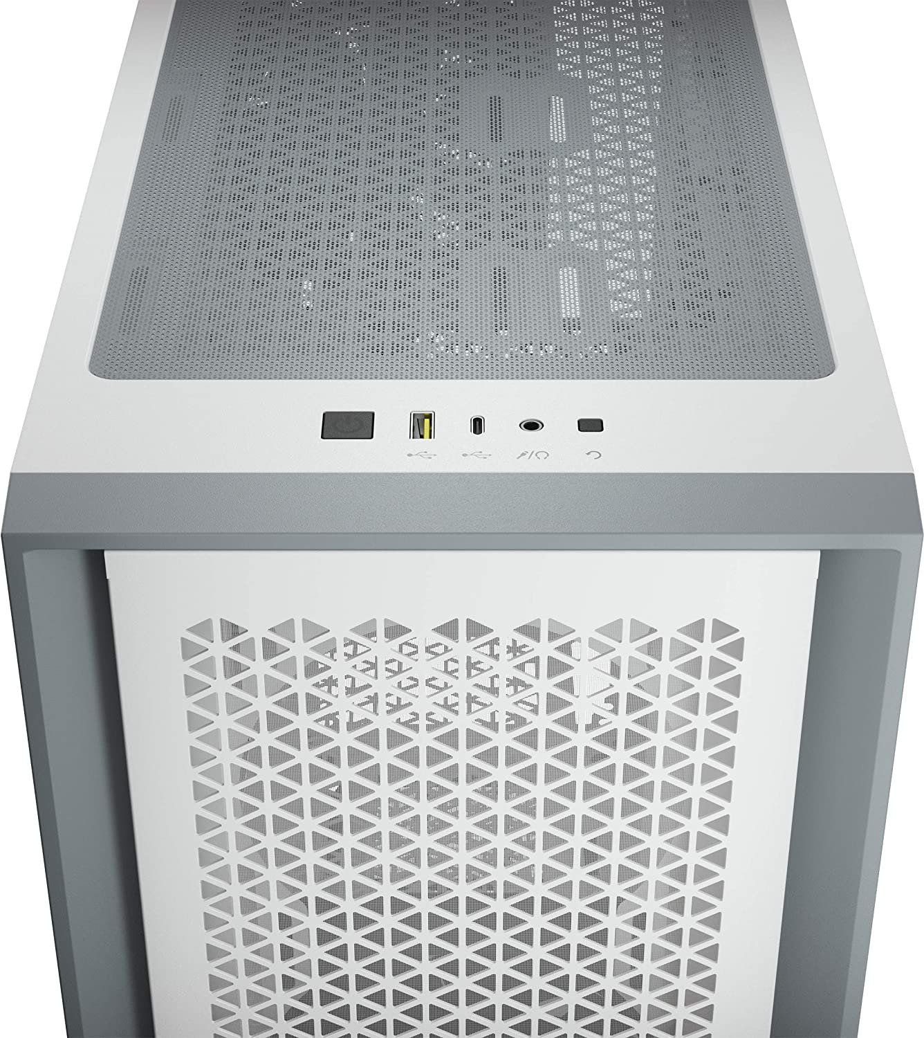 4000D AIRFLOW MID-TOWER ATX CASE A clean start to a great build With enhanced ventilation, the 4000D Airflow provides outstanding system airflow in a stylish package. Building your dream PC has never been easier when you start here. High-Airflow Front Panel An optimized front panel delivers massive airflow to your system for maximum cooling. CORSAIR Rapidroute Cable Management Route your major cables through a single channel, with a roomy 25mm of space behind the motherboard for all of your cables, making a clean-looking build easier than ever. Powerful Directed Airflow Equipped with two CORSAIR 120mm AirGuide fans, utilizing anti-vortex vanesTo concentrate airflow and enhance cooling. Unlimited possibilities Build it how you want today, with an easy upgrade path for tomorrow. Extreme Cooling Potential A spacious interior fits up to 6x 120mm or 4x 140mm cooling fans, along with multiple radiators including a 360mm in front and 280mm in the roof. DIMENSIONS Compact yet efficient, the 4000D AIRFLOW has excellent potential for expansion without being cumbersome. Put your connections within easy reach The modern front panel I/O panel includes a USB 3.1 Type-C Port, USB 3.0 port, and a combination audio/microphone jack. Vertical GPU Mount Ready With included vertical PCIe slots and a screw mount for a CORSAIR PCI-Express 3.0 extension cable (sold separately) you can show off your GPU and keep it secure at the same time. Easy slide-on, Slide-off side Panel Show off your high-profile components and RGB lighting with an easy slide-on, slide-off attach method. Specification: Case Dimensions 453mm x 230mm x 466mm Maximum GPU Length 360mm Maximum PSU Length 180mm (220mm if HDD cage removed) Maximum CPU Cooler Height 170mm Case Expansion Slots 7+2 vertical Case Drive Bays (x2) 3.5in (x2) 2.5in Case Form Factor Mid-Tower Case Windowed Tempered Glass Case Warranty Two years iCUE enabled No Color White Case Material Steel, Tempered Glass, Plastic Radiator Compatibility 120mm, 140mm, 240mm, 280mm, 360mm Compatible Corsair Liquid Coolers H55, H60, H75, H80i, H90, H100i, H105, H110i, H115i, H150i Case Power Supply ATX (not included) Weight 7.8kg/17.20lbs Case Drive Bays 3.5 2 Case Drive Bays 2.5 2