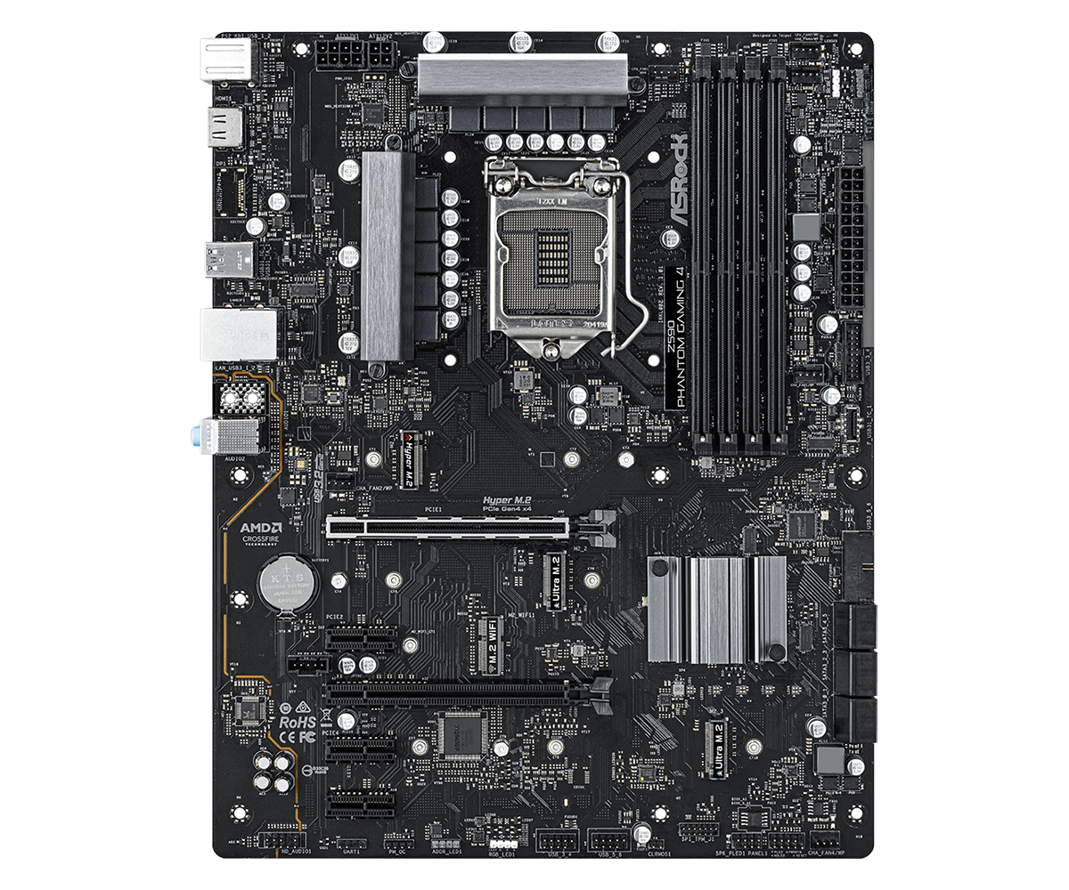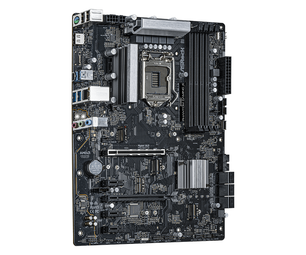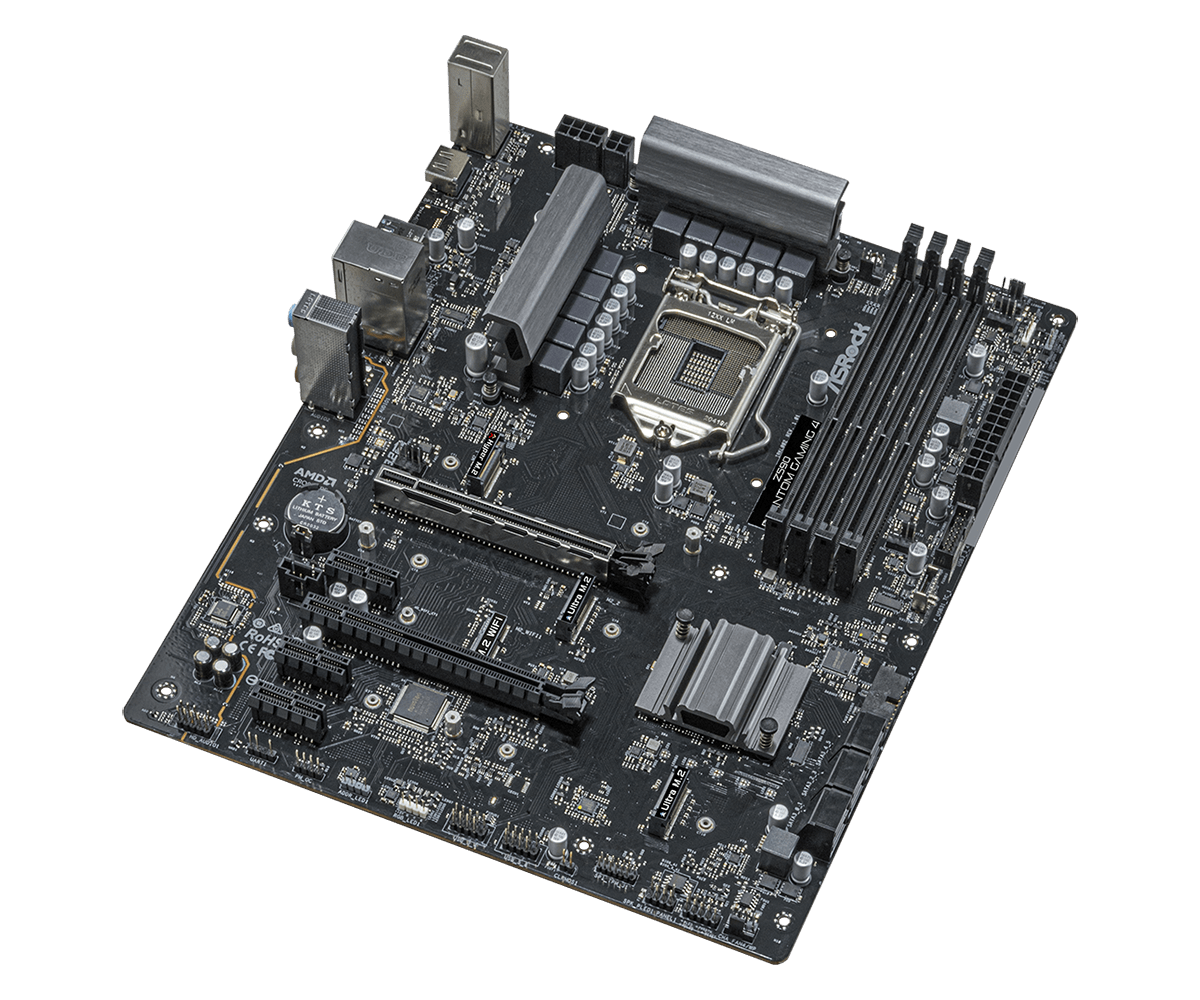 Unique Features ASRock USB 3.2 Gen2 ASRock Front Panel Type C USB 3.2 Gen2x2 Header (20 Gb/s) ASRock USB 3.2 Gen2 Type-A Port (10 Gb/s) ASRock USB 3.2 Gen2 Type-C Port (10 Gb/s) ASRock Super Alloy Premium 50A Power Choke Sapphire Black PCB High Density Glass Fabric PCB ASRock Steel Slot ASRock Hyper M.2 (PCIe Gen4x4) ASRock Full Spike Protection (for all USB, Audio, LAN Ports) ASRock Live Update & APP Shop CPU Supports 10th Gen Intel Core Processors and 11th Gen Intel Core Processors (LGA1200) Digi Power design 8 Power Phase design Supports Intel Turbo Boost Max 3.0 Technology Supports Intel K-Series unlocked CPUs Chipset Intel Z590 Memory Dual Channel DDR4 Memory Technology 4 x DDR4 DIMM Slots 11th Gen Intel Core Processors support DDR4 non-ECC, un-buffered memory up to 4800+(OC)* 10th Gen Intel Core Processors support DDR4 non-ECC, un-buffered memory up to 4666+(OC)* Supports ECC UDIMM memory modules (operate in non-ECC mode) Max. capacity of system memory: 128GB** Supports Intel Extreme Memory Profile (XMP) 2.0 *11th Gen Intel Core (i9/i7/i5) support DDR4 up to 3200; Core (i3), Pentium and Celeron support DDR4 up to 2666 natively. 10th Gen Intel Core (i9/i7) support DDR4 up to 2933; Core (i5/i3), Pentium and Celeron support DDR4 up to 2666 natively. BIOS 128Mb AMI UEFI Legal BIOS with multilingual GUI support ACPI 6.0 Compliant wake up events SMBIOS 2.7 Support CPU Core/Cache, CPU GT, DRAM, VCCIO, VCCSA, VCCST, VCCIN AUX, VPPM Voltage Multi-adjustment Graphics 11th Gen Intel Core Processors support Intel Xe Graphics Architecture (Gen 12). 10th Gen Intel Core Processors support Gen 9 Graphics Supports HDMI 2.0 with max. resolution up to 4K x 2K (4096 ?Œ ?‘2160) @ 60Hz Supports Auto Lip Sync, Deep Color (12bpc), xvYCC and HBR (High Bit Rate Audio) with HDMI 2.0 Port (Compliant HDMI monitor is required) Supports HDCP 2.3 with HDMI 2.0 Port *Intel UHD Graphics Built-in Visuals and the VGA outputs can be supported only with processors which are GPU integrated. 11th Gen Intel Core Processors support HDMI 2.0. 10th Gen Intel Core Processors support HDMI 1.4. Audio 7.1 CH HD Audio (Realtek ALC897 Audio Codec) Supports Surge Protection Nahimic Audio LAN Gigabit LAN 10/100/1000 Mb/s Giga PHY Intel I219V Supports Wake-On-LAN Supports Lightning/ESD Protection Supports Energy Efficient Ethernet 802.3az Supports PXE Slots 11th Gen Intel Core Processors 2 x PCI Express x16 Slots (PCIE1/PCIE3: single at Gen4x16 (PCIE1); dual at Gen4x16 (PCIE1) / Gen3x4 (PCIE3))* 10th Gen Intel Core Processors 2 x PCI Express x16 Slots (PCIE1/PCIE3: single at Gen3x16 (PCIE1); dual at Gen3x16 (PCIE1) / Gen3x4 (PCIE3))* 3 x PCI Express 3.0 x1 Slots Supports AMD Quad CrossFireX and CrossFireX 1 x M.2 Socket (Key E), supports type 2230 WiFi/BT PCIe WiFi module and Intel CNVi (Integrated WiFi/BT) *Supports NVMe SSD as boot disks Storage 6 x SATA3 6.0 Gb/s Connectors* 1 x Hyper M.2 Socket (M2_1), supports M Key type 2260/2280 M.2 PCI Express module up to Gen4x4 (64 Gb/s) (Socket M2_1 works with 11th Gen Intel Core processors only)** 1 x Ultra M.2 Socket (M2_2), supports M Key type 2260/2280 M.2 SATA3 6.0 Gb/s module and M.2 PCI Express module up to Gen3 x4 (32 Gb/s)** 1 x Ultra M.2 Socket (M2_3), supports M Key type 2260/2280/22110 M.2 SATA3 6.0 Gb/s module and M.2 PCI Express module up to Gen3 x4 (32 Gb/s)** *If M2_2 is occupied by a SATA-type M.2 device, SATA3_1 will be disabled. If M2_2 is occupied by a PCIe-type M.2 device, SATA3_0 will be disabled. If M2_3 is occupied by a SATA-type M.2 device, SATA3_2 will be disabled. ***Supports Intel Optane Technology Supports NVMe SSD as boot disks Supports ASRock U.2 Kit RAID Supports RAID 0, RAID 1, RAID 5 and RAID 10 for SATA storage devices Supports RAID 0 and RAID 1 for M.2 NVMe storage devices* *RAID function for PCIe mode SSD in M2_1 is only available with Intel SSD installed. Internal Connectors 1 x SPI TPM Header 1 x Power LED and Speaker Header 2 x RGB LED Headers* 2 x Addressable LED Headers** 1 x CPU Fan Connector (4-pin)*** 1 x CPU/Water Pump Fan Connector (4-pin) (Smart Fan Speed Control)**** 4 x Chassis/Water Pump Fan Connectors (4-pin) (Smart Fan Speed Control)***** 1 x 24 pin ATX Power Connector 1 x 8 pin 12V Power Connector (Hi-Density Power Connector) 1 x 4 pin 12V Power Connector (Hi-Density Power Connector) 1 x Front Panel Audio Connector 1 x Thunderbolt AIC Connector (5-pin) (Supports ASRock Thunderbolt 4 AIC Card) 2 x USB 2.0 Headers (Support 4 USB 2.0 ports) (Supports ESD Protection) 2 x USB 3.2 Gen1 Headers (Support 4 USB 3.2 Gen1 ports) (ASMedia ASM1074 hub) (Supports ESD Protection) 1 x Front Panel Type C USB 3.2 Gen2x2 Header (20 Gb/s) (Supports ESD Protection) *Support in total up to 12V/3A, 36W LED Strip **Support in total up to 5V/3A, 15W LED Strip ***The CPU Fan Connector supports the CPU fan of maximum 1A (12W) fan power. ****The CPU/Water Pump Fan supports the water cooler fan of maximum 2A (24W) fan power. *****The Chassis/Water Pump Fan supports the water cooler fan of maximum 2A (24W) fan power. CPU_FAN2/WP, CHA_FAN1/WP, CHA_FAN2/WP, CHA_FAN3/WP and CHA_FAN4/WP can auto detect if 3-pin or 4-pin fan is in use. Rear Panel I/O 1 x PS/2 Mouse/Keyboard Port 1 x HDMI Port 1 x USB 3.2 Gen2 Type-A Port (10 Gb/s) (ReDriver) (Supports ESD Protection) 1 x USB 3.2 Gen2 Type-C Port (10 Gb/s) (ReDriver) (Supports ESD Protection) 2 x USB 3.2 Gen1 Ports (Supports ESD Protection) 2 x USB 2.0 Ports (Supports ESD Protection) 1 x RJ-45 LAN Port with LED (ACT/LINK LED and SPEED LED) HD Audio Jacks: Line in / Front Speaker / Microphone Software and UEFI Software ASRock Motherboard Utility (Phantom Gaming Tuning) ASRock Polychrome SYNC ASRock XFast LAN UEFI ASRock EZ Mode ASRock Full HD UEFI ASRock My Favorites in UEFI ASRock Instant Flash ASRock Internet Flash ASRock Easy RAID Installer *These utilities can be downloaded from ASRock Live Update & APP Shop. Support CD Drivers, Utilities, AntiVirus Software (Trial Version), Google Chrome Browser and Toolbar Accesso