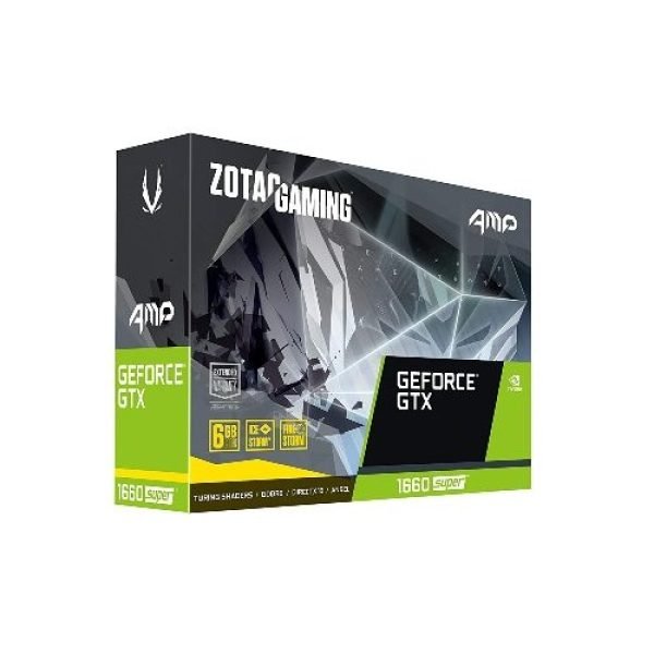 Memory Size 6GB GDDR6 GPU Interface PCI-Express 3.0 GPU Memory Bus 192-bit Max Display Support 4 CUDA Cores 1408 TECHNICAL SPECIFICATIONS Brand_ Zotac GPU_ GeForce GTX 1660 SUPER CUDA cores_ 1408 Video Memory_ 6GB GDDR6 Memory Bus_ 192-bit Engine Clock_ Boost: 1845 MHz Memory Clock_ 14 Gbps PCI Express_ 3.0 Display Outputs_ 3x DisplayPort 1.4, HDMI 2.0b HDCP Support_ Yes Multi Display Capability_ Quad Display Recommended Power Supply_ 450W Power Consumption_ 125W Power Input_ 8-pin DirectX_ 12 API feature level 12_1 OpenGL_ 4.5 Cooling_ IceStorm 2.0 Slot Size_ Dual Slot SLI_ No Supported OS_ Windows 10 Card Length_ 209.6mm x 119.3mm x 41mm / 8.3in x 4.7in x 1.61in Accessories_ User Manual Dimensions_ 209.6mm x 119.3mm x 41mm / 8.3in x 4.7in x 1.61in Weight (Approximate)_ 0.8 gm Specification: Zotac Nvidia GeForce GTX 1660 Super AMP 6GB GDDR6 Graphics Card WARRANTY_ 3 Years Warranty Brand_ Zotac Product Type_ Graphics Card FANS_ 2 FORM FACTOR_ ATX , E-ATX , MICRO-ATX CHIPSET_ NVIDIA BIT RATE_ 192 CAPACITY_ 6 GB MEMORY TYPE_ GDDR6 PROCESSOR SERIES_ GTX