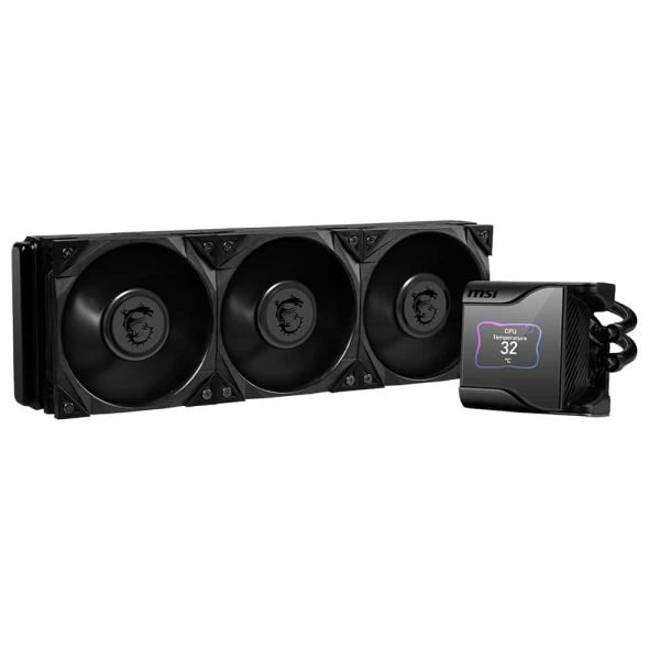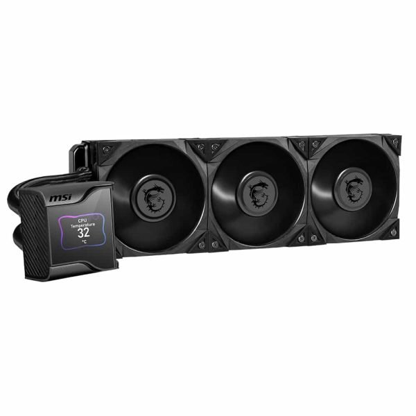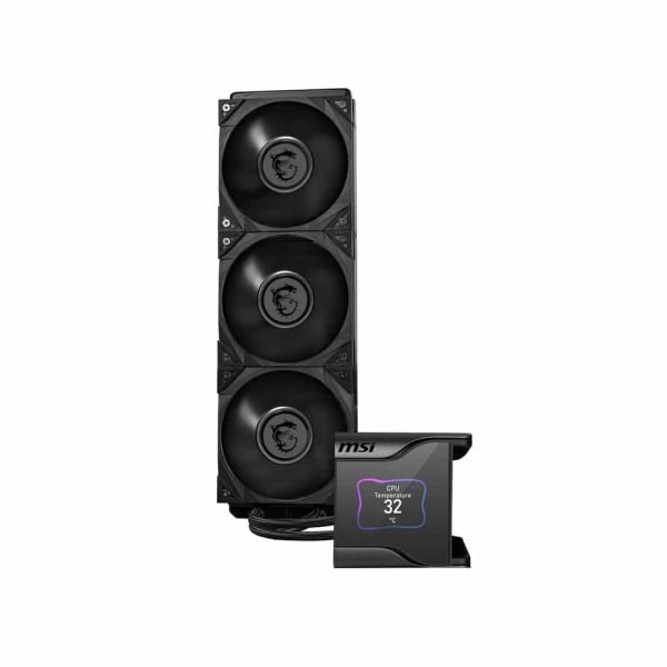 Cooler Type Liquid Cooler (AIO) Radiator Size 360mm Number of Fans 3 Fan Connector PWM (4-pin) Fan Power Consumption 4.8w (Max) OVERVIEW MSI MAG CORELIQUID S360 Liquid CPU Cooler is a top-of-the-line liquid cooling system for the CPU. The product is designed to be compatible with all current Intel and AMD sockets, including the AM5. It has a 360mm radiator and is designed to be easy to install. The MAG CORELIQUID S360 is also easy to clean, as it has a large fill port and a transparent design. The water block of MAG CORELIQUID S360 Liquid Cooler Water Block has a 60mm fan which helps to dissipate heat for M.2 SSD, CPU VRM, and surrounding components. The pump of this MSI cooler is integrated with the radiator to reduce the noise and reduce the noise. In connection, placing the pump on the radiator increases the life of the pump by removing it from the heat source and It provides out-of-the-box support for the LGA 1700 socket. This MSI liquid cooler has a split path through the radiator that dissipates heat rapidly, returning to the cold liquid loop. Made with three layers of netted plastic tubing and a strong mesh, this MSI MAG cooler is designed for stylish but flexible. It is designed with a secure installation bundle compatible with several Intel and AMD motherboards. TECHNICAL SPECIFICATIONS Intel Socket Support_LGA 1700, 1200, 1151, 115, 1155, 1156, 2066, 2011-3, 2011 AMD Socket Support_AM4, AM3+, AM3, AM2+, AM2, FM2+, FM2, FM1, TR4, sTRX4, SP3 Water Cooling Tube Length_400 mm Water Cooling Tube Material_Black Rubber + Mesh Radiator Material_Aluminum Radiator Dimensions (W x D x H)_394 x 120 x 27 mm / 15.5 x 4.7 x 1.06 inches Radiator Size_360 mm Number of Fans_3 Fan Speed_0 ~ 2000 RPM Fan Power Consumption_4.8 W (MAX) Fan Rated Current_0.4 A (MAX) Fan Bearing_Hydro-Dynamic Bearing Fan Static Pressure_2.21 mm H2O Fan Noise Level_22.7 dBA Fan Air Flow_56.2 CFM PWM Mode_Yes Cable Length (PWM Cable)_350 mm / 13.78 inches Fan Life Expectancy_50,000 Hours Fan Connector_4 pin PWM Pump Rated Current_0.33A Pump Speed_2800 +/-300 RPM (PWM controlled) Pump Power Consumption_4W Pump Noise Level_21.2 dBA Pump Life Expectancy_50,000 Hours Pump Connector_4 pin PWM Cold Plate Material_Copper Panel Type_IPS Panel Size_2.4 inch Panel Color Depth_16 bits Panel Brightness_500 nits Interface Connector_USB 2.0 pin header Panel Resolution_320 x 240 Power Connector_SATA Block Dimensions (W x D x H)_95 x 95 x 83.53 mm Fan Dimensions (W x D x H)_120 x 120 x 25 mm, 4.7 x 4.7 x 0.98 inches Specification: MSI MEG CORELIQUID S360 Liquid CPU Cooler Brand MSI Product Type CPU Coolers COLOR BLACK COOLER TYPE LIQUID AIO COOLER FAN SIZE 360 mm LIGHTING NONE FAN CONTROLLER YES IDEAL FOR GAMING YES WARRANTY 3 Years Warranty