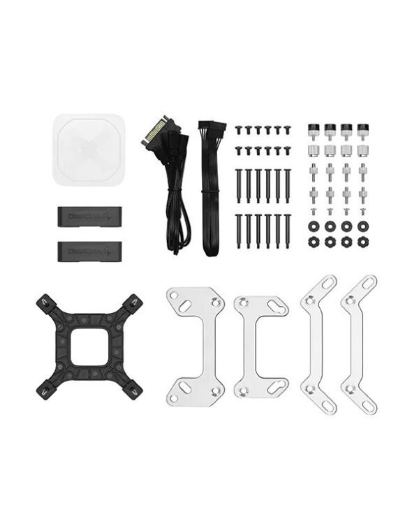 The DeepCool LS720 premium liquid CPU cooler maximizes cooling performance and low-noise efficiency with a 360mm radiator, three FC120 A-RGB PWM fans, and an infinity mirror cap design. A NEW ERA OF DEEPCOOLBuilt on our 4th Generation high-performance water pump that maximizes cooling performance featuring: 1 Improved microchannel design ensures optimal coolant flow. 2 Powerful three-phase drive motor up to 3100 RPM. 3 Thick solid copper base with a seamless match. COOL AND QUIET Get treated to excellent cooling and superb silent efficiency with the included FC120 fans boasting enhanced static pressure, concentrated airflow, and a fluid dynamic bearings. SIMPLE AND SECURE Installation is quick and easy with newly designed mounting brackets that keep your cooler fastened safely on both Intel and AMD platforms. INTEL LGA2066/2011-v3/2011/1700/1200/1151/1150/1155 AMD sTRX4/sTR4/AM5/AM4 CUSTOMIZE YOUR LOOKThe new infinity mirror pump face design projects two light loops for a mesmerizing visual effect while also allowing installation in any orientation with a independently rotatable logo plate. For full customization, an additional blank plate is provided for your own design. SYNCHRONIZE YOUR SETUP WITH RGB LIGHTING EFFECTS Coordinate your colors through supported RGB software and motherboard synchronization to access control for different lighting effects. A default Auto-RGB rainbow effect is enabled when no controller is detected allowing limited functionality on motherboards without 5V A-RGB headers. Specification : Application For Intel LGA2066/2011-v3/2011/1700/1200/1151/1150/1155 AMD sTRX4/sTR4/AM5/AM4 Technical Spec Net Weight 1607 g Radiator Dimensions 402 ?Œ ?‘120 ?Œ ?‘27 mm Radiator Material Aluminum Tube length 410 mm Pump Dimensions 86 ?Œ ?‘74 ?Œ ?‘57 mm Pump Speed 3100 RPM ?¥ ?±10% Pump Noise 19 dB(A) Pump Connector 3-pin Pump Rated Voltage 12 VDC Pump Rated Current 0.47 A Pump Power Consumption 5.64 W Fan Dimensions 120 ?Œ ?‘120 ?Œ ?‘25 mm Fan Speed 500~2250 RPM ?¥ ?±10% Fan Airflow 85.85 CFM Fan Air Pressure 3.27 mmAq Fan Noise ?¤_32.9 dB(A) Fan Connector 4-pin PWM Bearing Type Fluid Dynamic Bearing Fan Rated Voltage 12 VDC Fan Rated Current 0.29 A Fan Power Consumption 3.48 W LED Type Addressable RGB LED LED Connector 3-pin(+5V-D-G) LED Rated Voltage 5 VDC LED Power Consumption 2.2 W ?€¢_ ?¶PUMP ?€¢_ ?¤/ 5.4 W ?€¢_ ?¶FAN ?Œ ?‘3 ?€¢_ ?¤ P R-LS720-BKAMNT-G-1